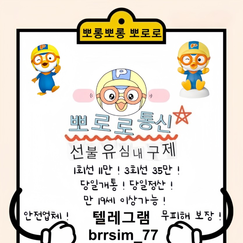 선불유심내구제 텔레그램@brrsim_77 신뢰와 정직으로 함께하는 금융 파트너 - 뽀로로 통신은 정식등록된 선불유심 내구제 정식업체로서 고객 여러분의 다양한 금융 상황에 맞춘 비대면 당일소액급전 및 비대면 초소액급전대출 서비스를 제공합니다 !